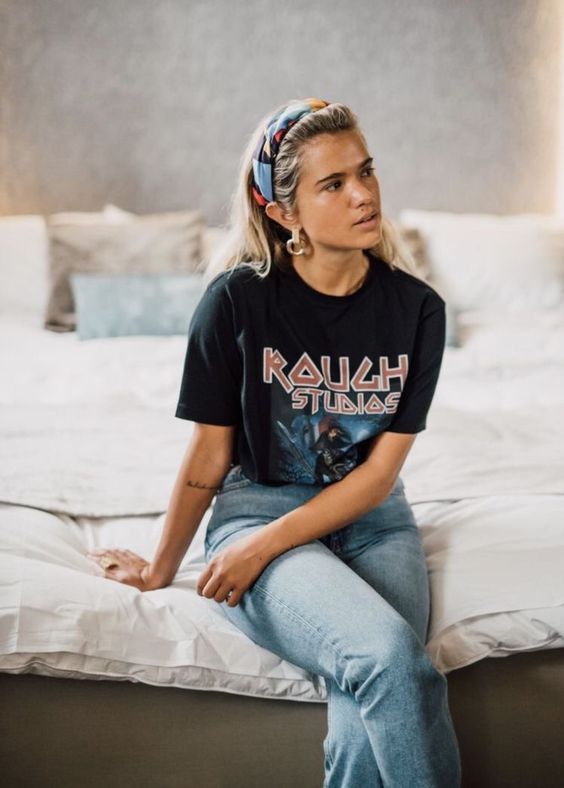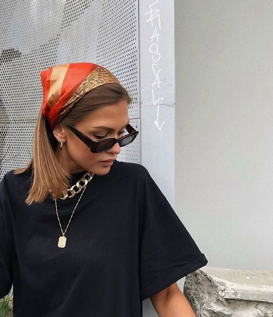 Sabe aquele bad hair day? Então, esta é uma ótima opção para esses dias. Basta pegar um lenço e dar um nó no topo da cabeça e depois dobrar as pontas por baixo.